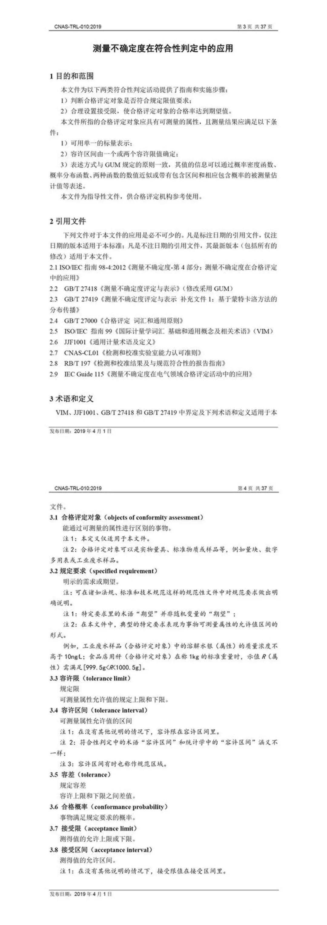 測(cè)量不確定度在符合性判定中的應(yīng)用正式實(shí)施了